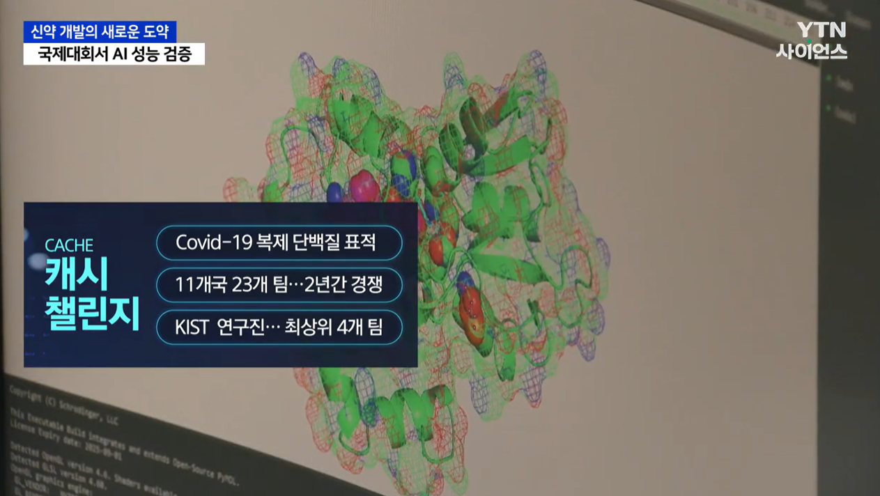 인공지능으로 신약 후보 물질을 발굴하는 국제 대회인 캐시 챌린지는 미국 국립보건원 등이 후원하는 이 대회로 대회 데이터를 일반에 공개하고 후속 연구도 지원합니다. 최근 주제는 코로나19 바이러스의 특정 복제 단백질을 표적으로 한 신약 후보 물질을 찾는 것이였으며, KIST 천연물연구소 박근완 연구진도 자체 개발한 인공지능 프로그램으로 참여했는데 최상위 4개 팀에 선정되었습니다.